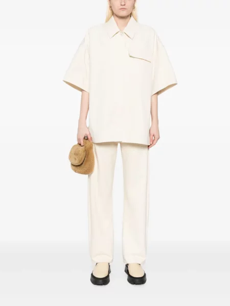 Geci dama Jil Sander se remarcă printr-o estetică rafinată și croieli arhitecturale, cu siluete care echilibrează tailoringul și volumului controlat.