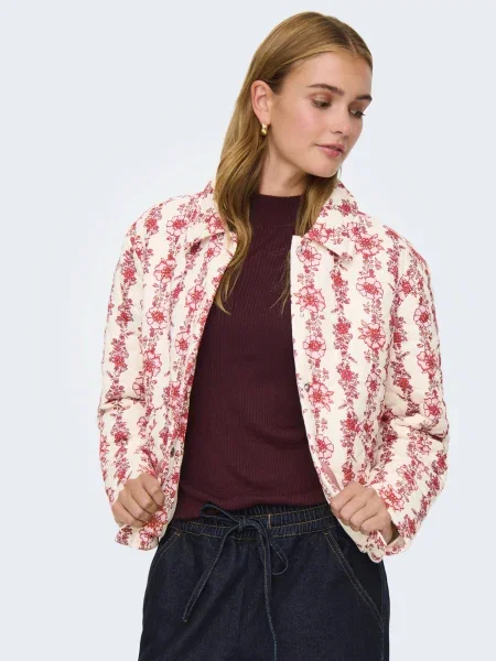 Only Geacă de primăvară-toamnă ONLBIANA crem / roz / cranberry / roşu închis
