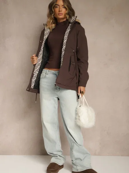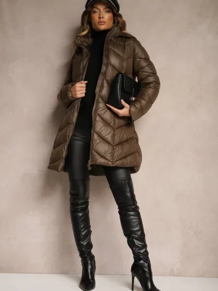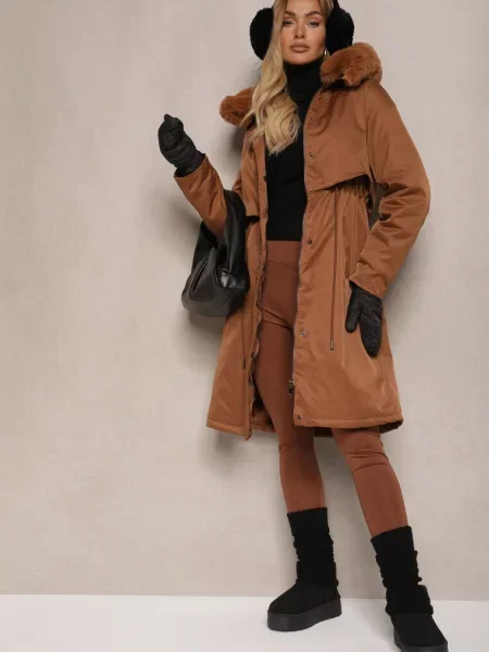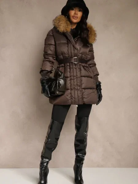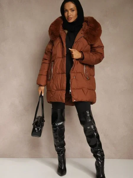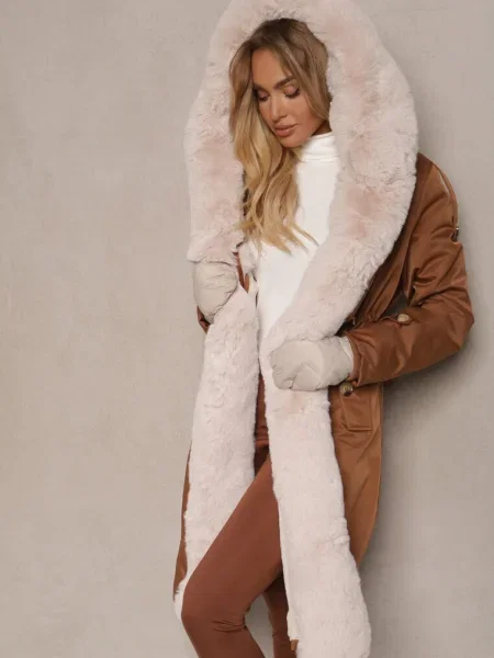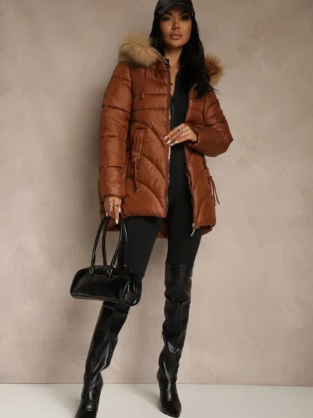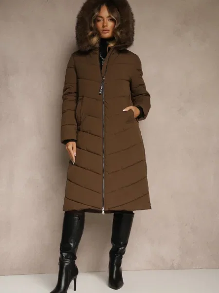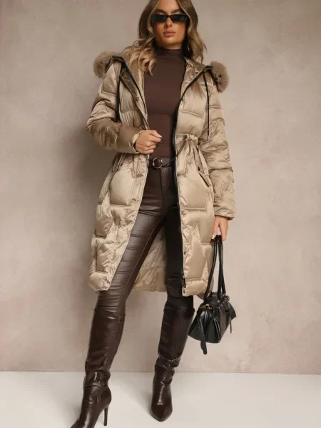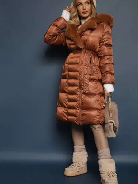 Other Geacă matlasată lungă până la genunchi cu cordon și blană Vivenda