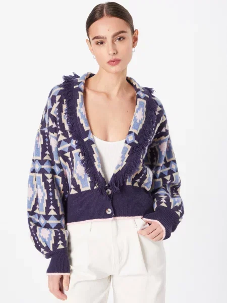 Warehouse Geacă tricotată Aztec bleumarin / albastru deschis