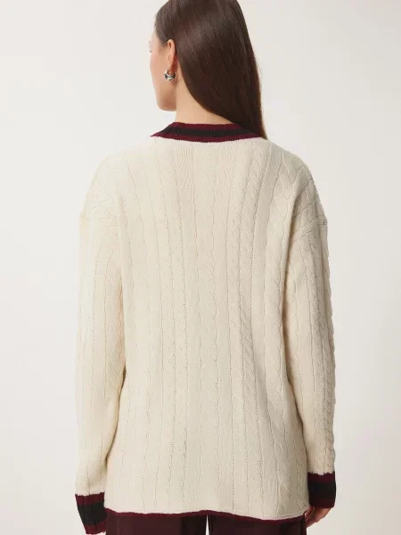 Happiness İstanbul Happiness İstanbul Geacă tricotată crem / roșu vin