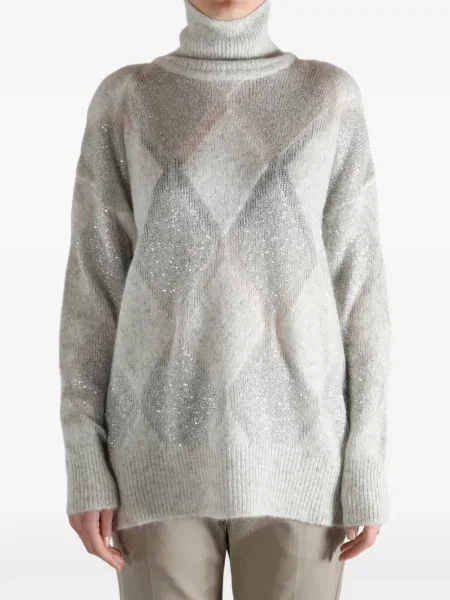 Pulover cu broderie tricotate cu model argyle