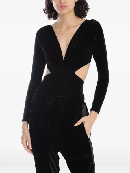 Body de catifea cu decolteu în V
