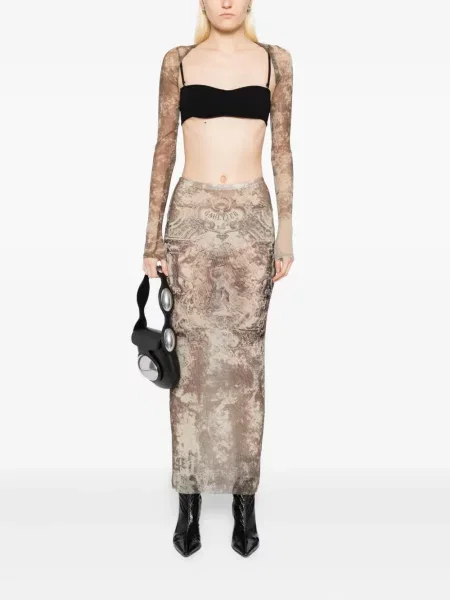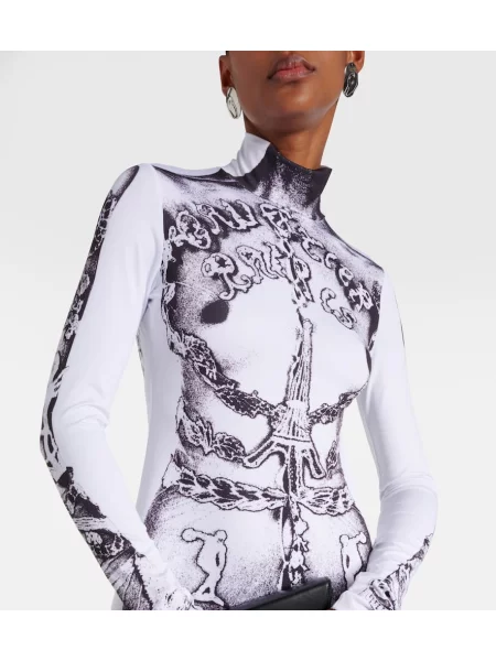 Detaliile fac diferenţa: corseterie, dantelă aplicată şi joncţiuni de texturi modelează siluete cu impact, de la sculptural la fluid, adaptate mai multor scenarii de purtare. Gama cuprinde şi piese casual reinterpretate — Piese vestimentare Jean Paul Gaultier damă care includ topuri şi tricouri, exemplificate în selecţii precum Tricouri dama Jean Paul Gaultier.