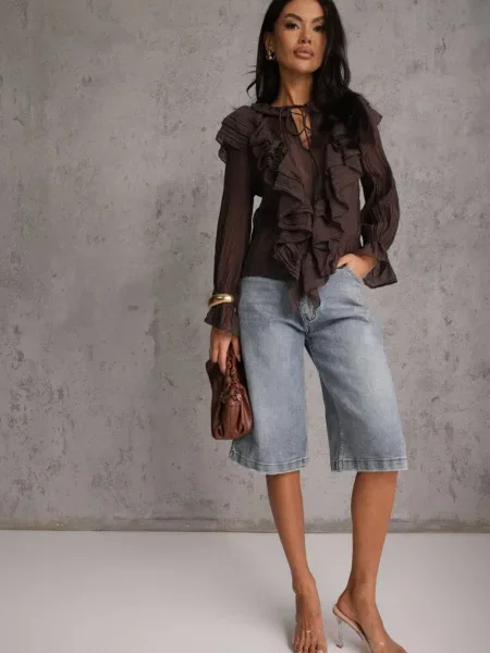 Rochie Trapeză din cu Volane la Umeri Aleradia