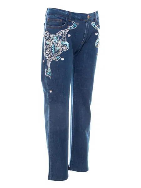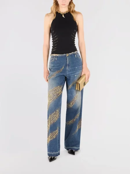 Există și reinterpretări ale denimului în secțiunea blugi Roberto Cavalli, iar prețurile variază între 350 Lei și 91 844 Lei. Siluetele alternează între rochii fluide, croieli bodycon care marchează talia și jachete structurate, toate completate de detalii lucrate manual — aplicații, broderii și finisaje care accentuează senzația de opulență fără compromis.