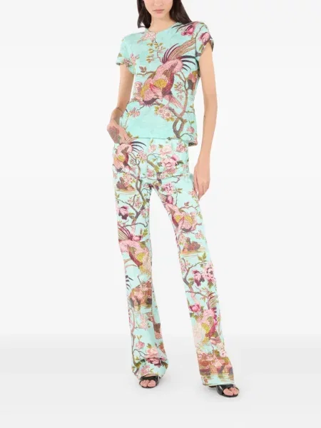 Roberto Cavalli Pantaloni cu picior drept de mătase cu imagine