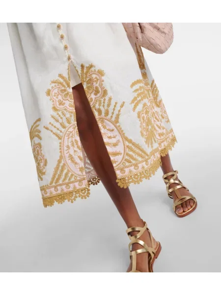 Mătasea, bumbacul fin, inul şi dantela sunt folosite pentru finisaje artizanale; broderiile şi smocking‑ul adaugă textură şi profunzime. Linia resort şi swimwear continuă aceeaşi logică: vedeţi Costume de baie Zimmermann pentru croieli şi proporţii atent lucrate.