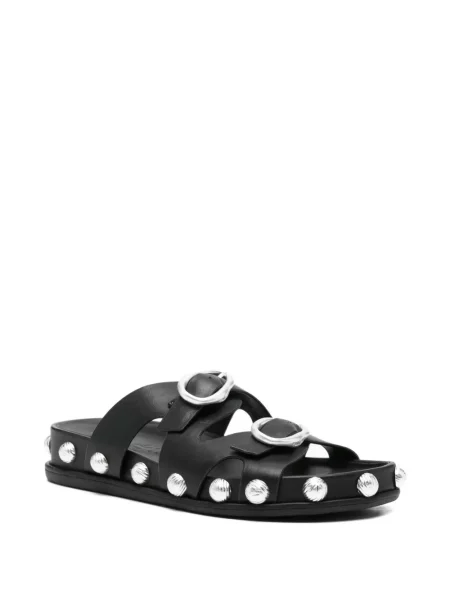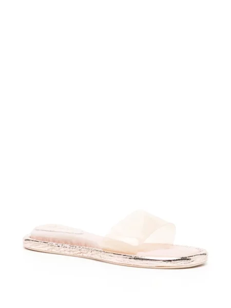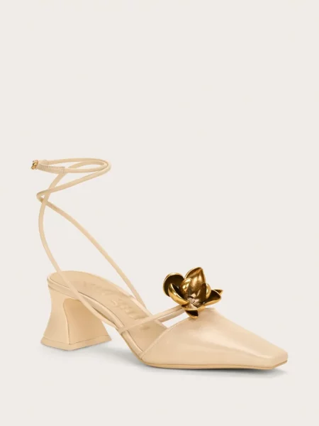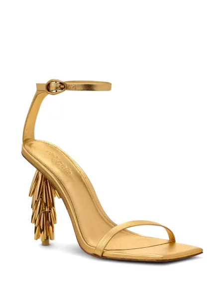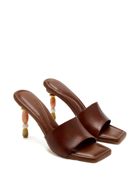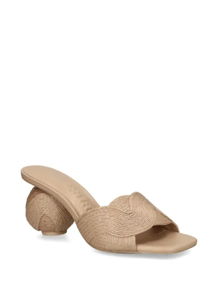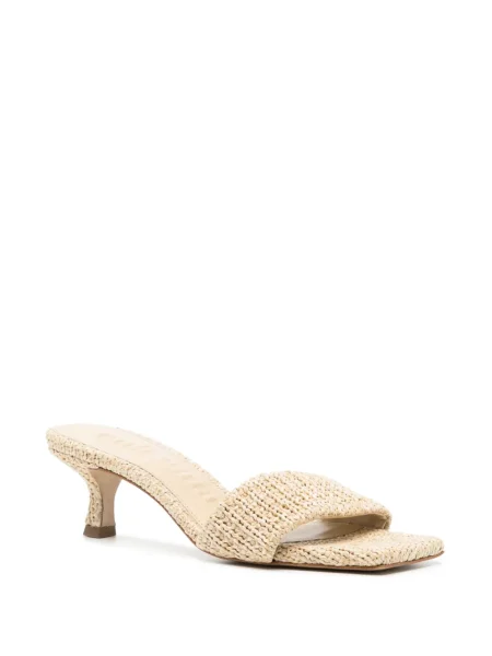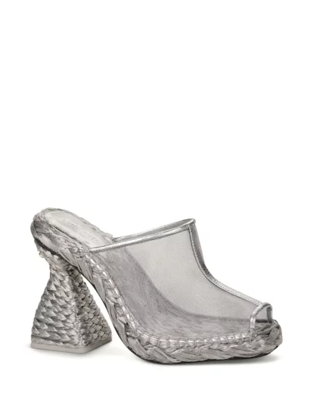 Detaliile designerului apar în execuție: tocuri arhitecturale din acrilic sau lemn, împletituri din rafie, piele și piele întoarsă, muchii curate și finisaje atent calibrate care întăresc impresia sculpturală a fiecărui model. Modelele variază de la Cizme dama Cult Gaia până la slide-uri cu talpă conturată și sandale cu barete minimale, concepute pentru impact vizual și dialog cu garderoba.