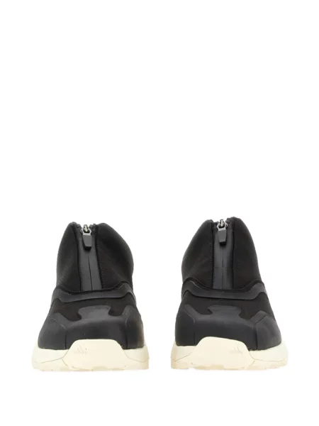 Materialele tehnice și construcțiile tip „sock” sau platformele înalte definesc detaliile: combinații de neopren, tricot tehnic și piele asociate cu inserții amortizante conturează identitatea. Pentru o comparație a direcției estetice, puteți privi și propunerile de la Prada sau Balenciaga, care împărtășesc aceeași intenție avantgardistă în linii.