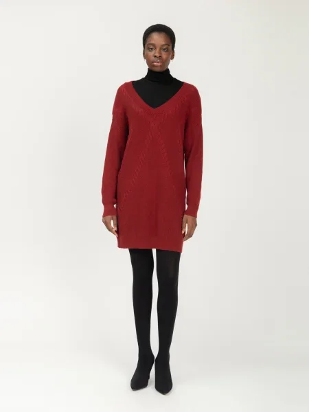 Rochie tricotat roşu închis