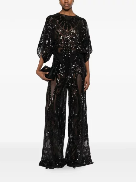 Salopetă Norma Kamali cu model floral tricotate negru