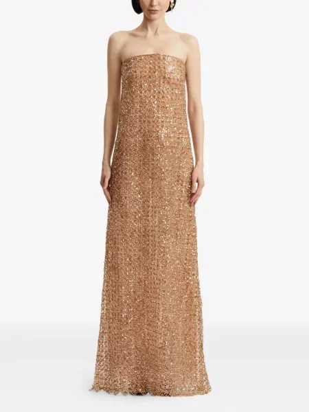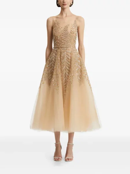 Oscar De La Renta Rochie midi cu paiete cu model floral până la genunchi