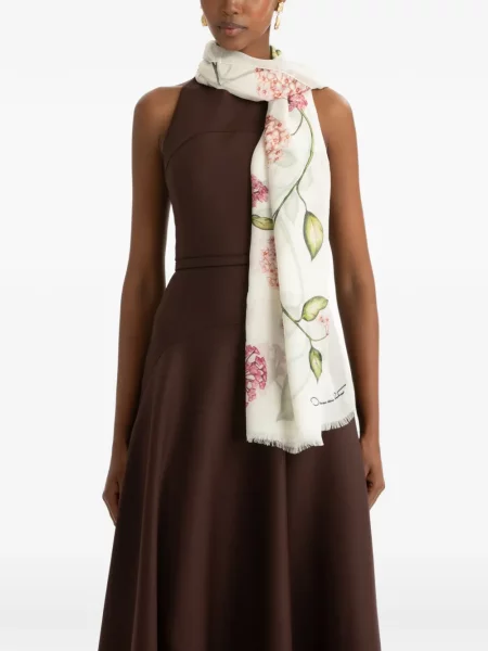 Oscar De La Renta Rochie midi de lână cu model floral până la genunchi