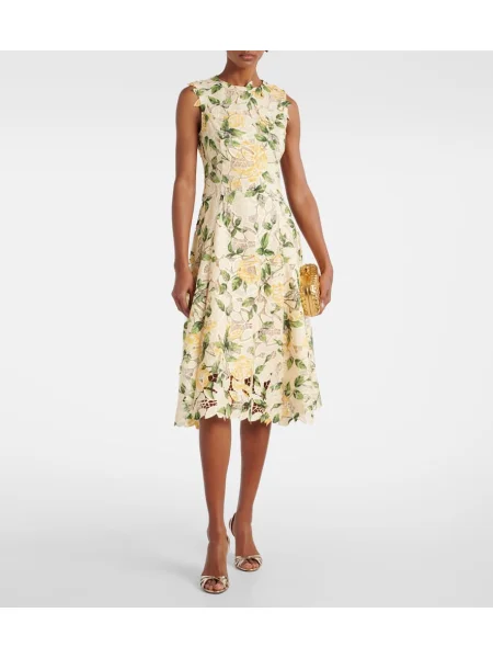 Oscar De La Renta Rochie midi cu model floral din dantelă până la genunchi