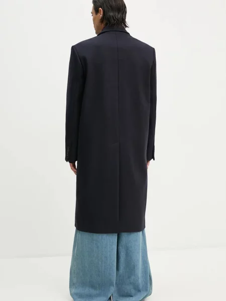 Y/project Palton de lana DOUBLE FRONT COAT marin de tranzitie cu doua randuri de