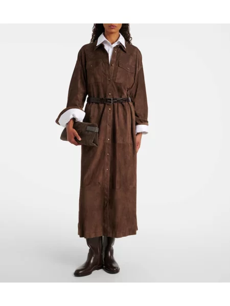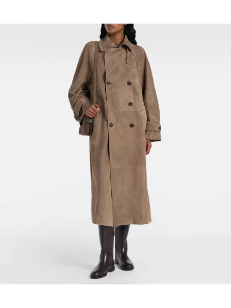 Brunello Cucinelli Palton din piele de căprioară cu două rânduri de nasturi