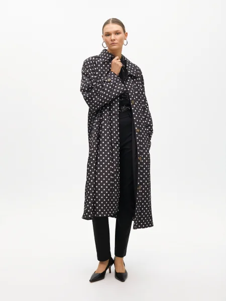 Dries Van Noten Palton din satin cu buline cu două rânduri de nasturi