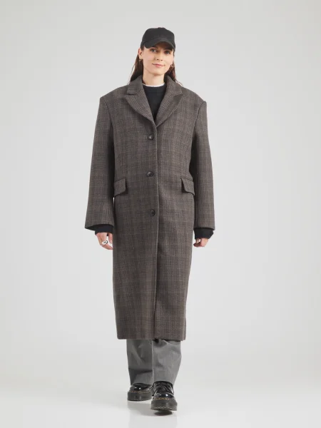 Pieces Palton de primăvară-toamnă PCMARBLE crem / noapte / maro închis