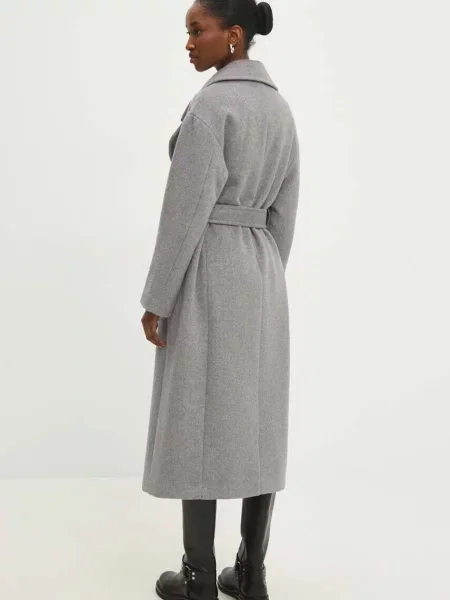 Reserved Palton cu rând dublu de și adaos de lână gri-neutru