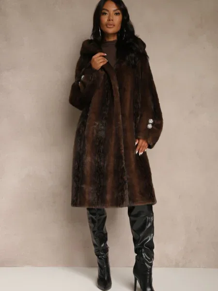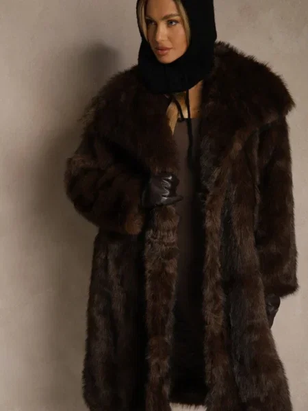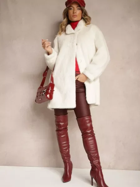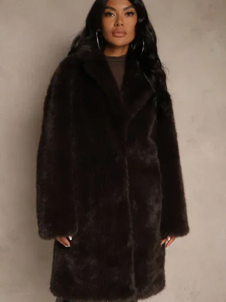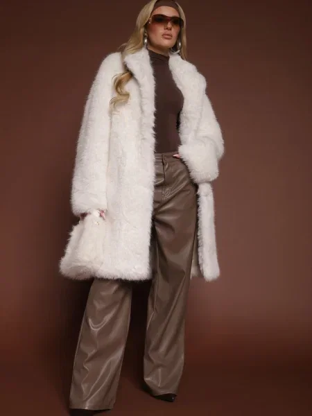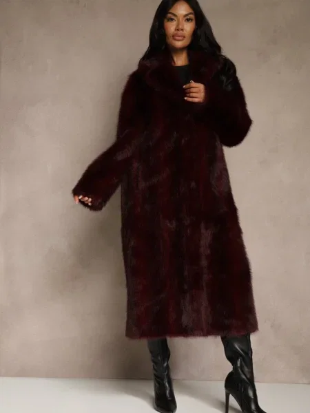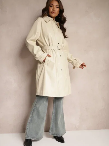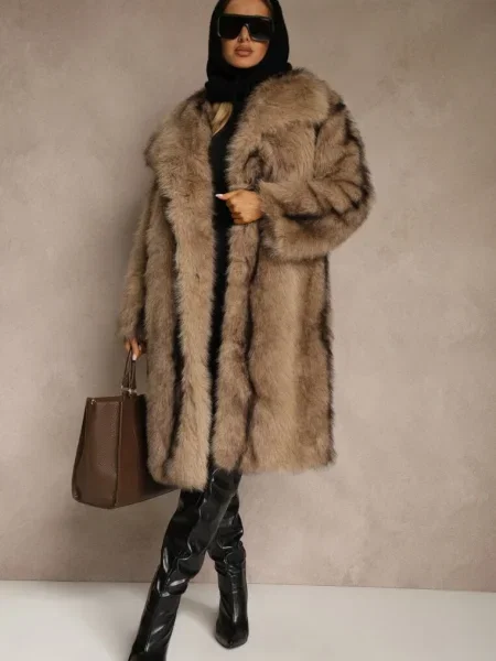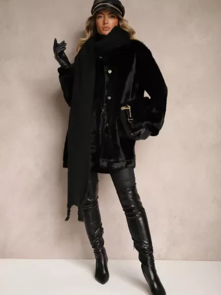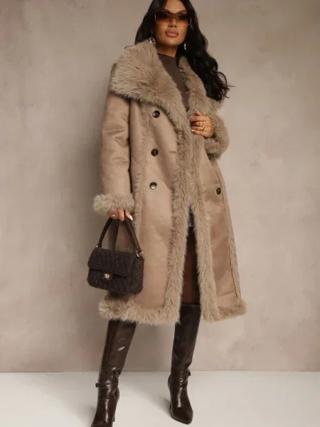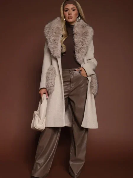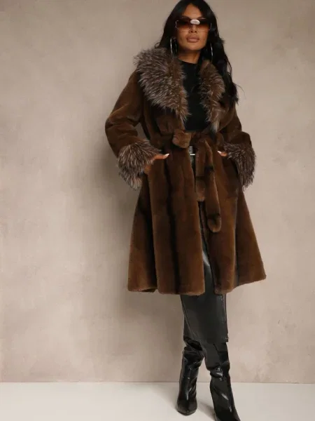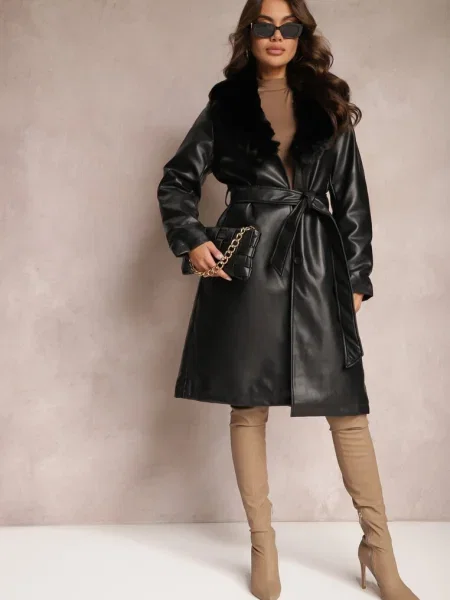 Other Palton din Piele Ecologică cu Guler din Blană și în Talie Talra