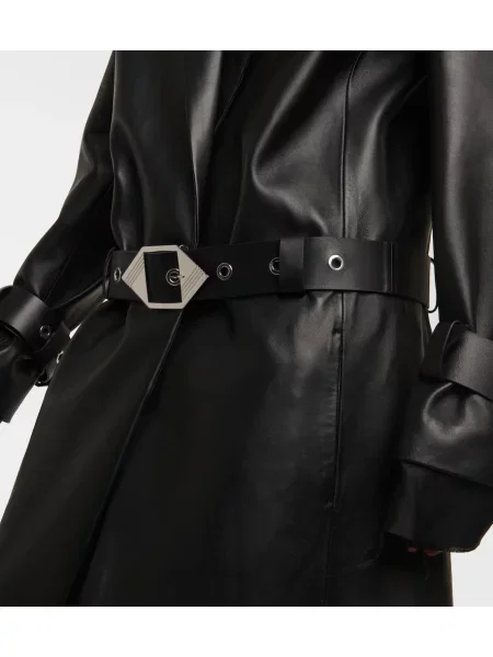 The Attico Haină de piele din piele cu două rânduri de nasturi