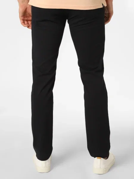 Pantalonii chino sunt printre cele mai versatile alegeri. De regulă, sunt realizați din bumbac twill, uneori cu elastan, și se potrivesc la birou, la ieșiri în oraș sau în ținute smart casual. Intră ușor în combinație cu o cămașă, un tricou polo sau un pulover subțire.