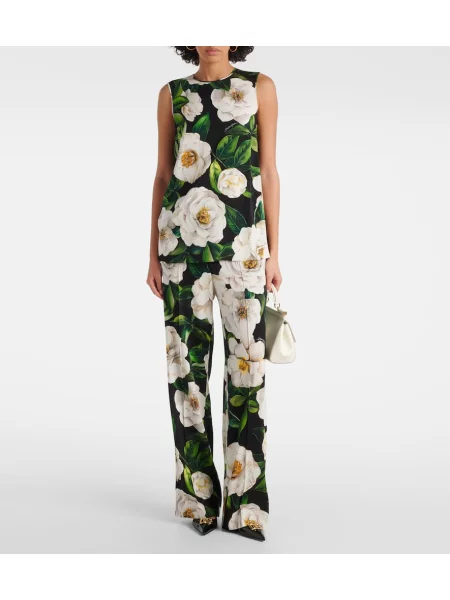 Dolce&gabbana Cropp pantaloni de mătase cu imagine