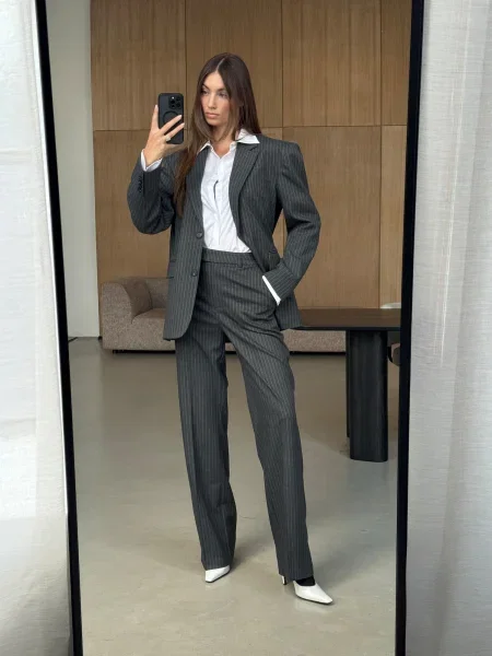 Rære By Lorena Rae RÆRE by Lorena Rae Pantaloni cu dungă Fabrice gri