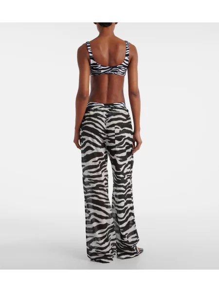 The Attico Pantaloni cu imagine din muselină cu model zebră