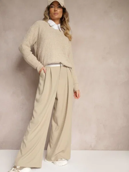 - Bej pantaloni palazzo