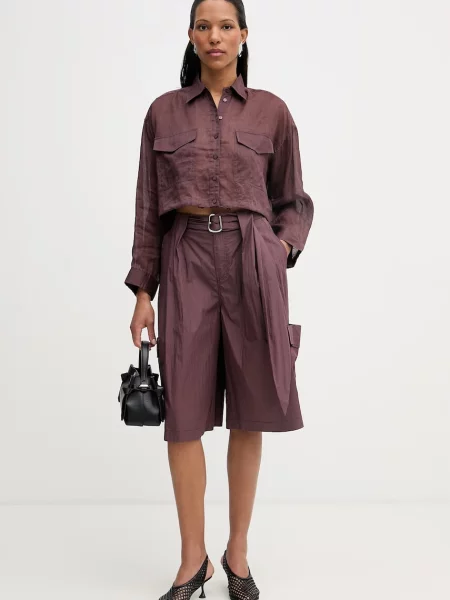 Allsaints Pantaloni scurți din amestec de in DERI LYN neted medium waist
