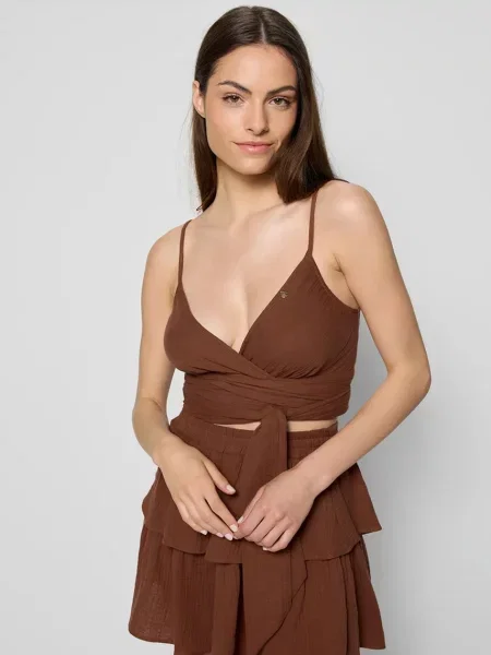Reserved Pantaloni scurți din muselină maro-închis