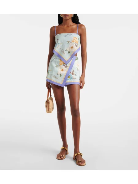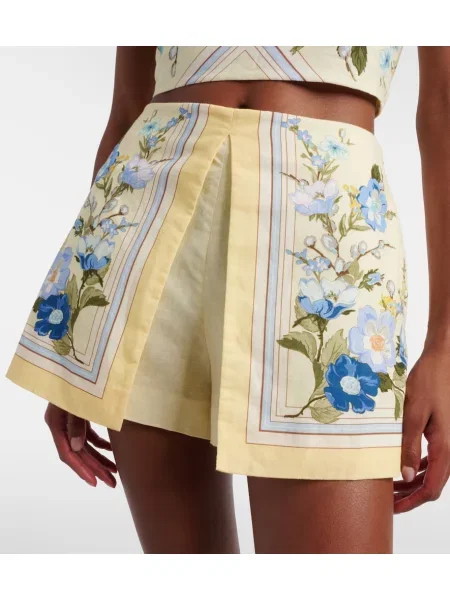 Self-portrait Pantaloni scurți de in de in cu model floral