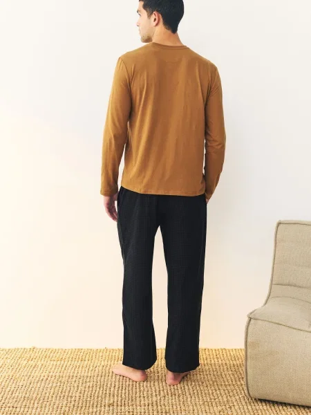 Next Pijama lungă Motionflex marin / maro deschis / lila