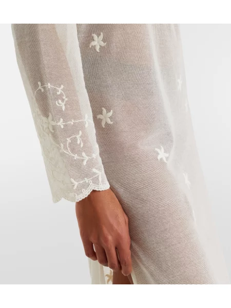 Rochie de bumbac cu broderie transparente din tul