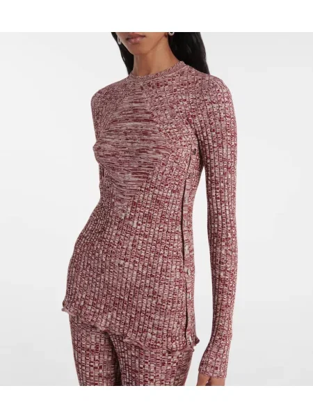 AMBUSH pulover de lână Damaged Rib V Neck Sweater femei călduros bordo