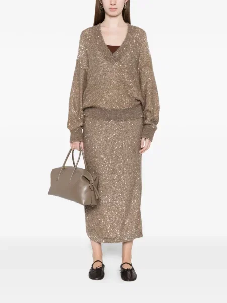 Brunello Cucinelli Pulover cu paiete cu decolteu rotund