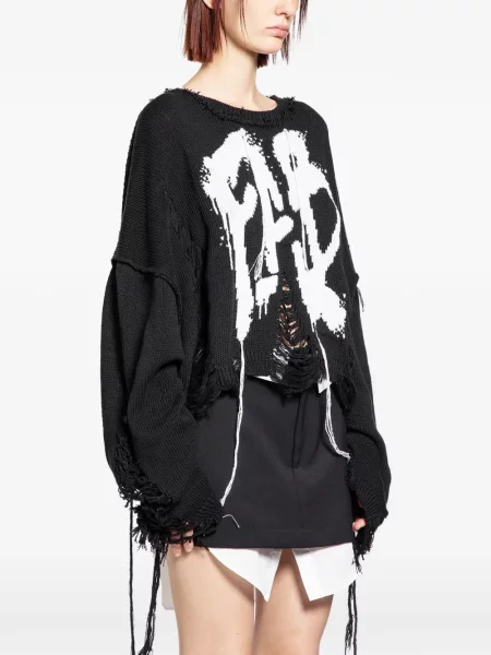 Balenciaga Pulover zdrențuiți cu model leopard din jerseu