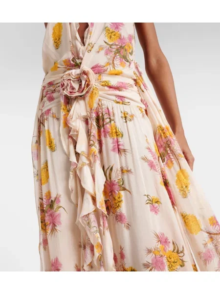 Blumarine Rochie maxi de mătase cu model floral de costum