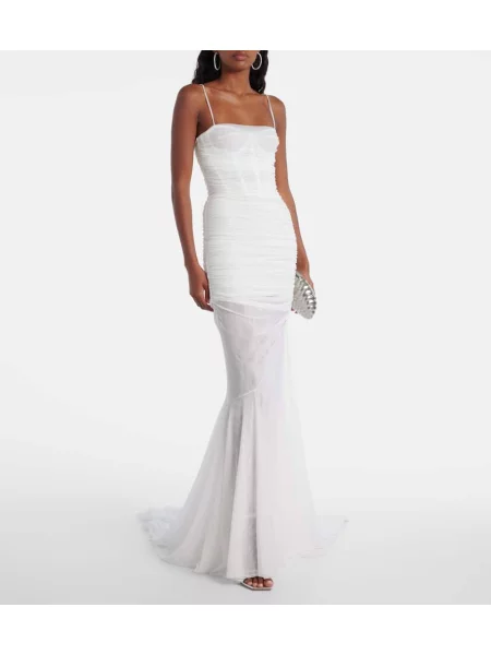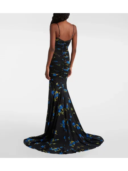 Blumarine Rochie maxi cu model floral din jerseu drapată