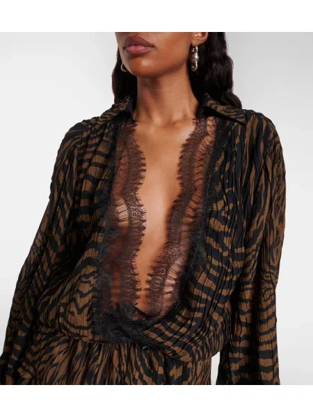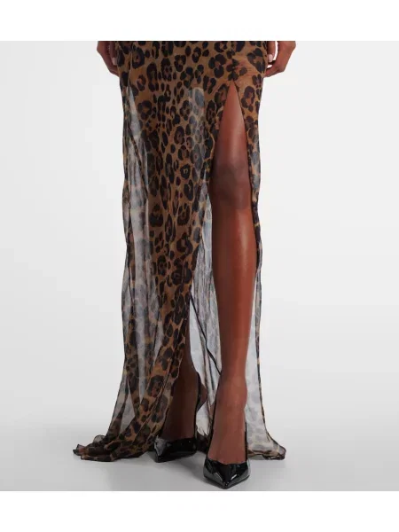 Blumarine Rochie maxi de mătase cu imagine cu model leopard