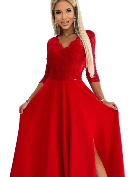 Numoco Rochie maxi din dantelă eleganta cu crăpătură