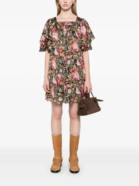 Chloé Rochie mini cu model floral cu volane de costum