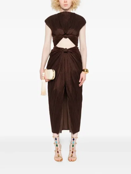 Rochii midi Cult Gaia se remarcă prin țesături fluide și pliseuri care susțin jocul de forme, iar finisajele pun în evidență construcția, nu imprimeul. Prețul mediu pe piață este în jur de 6 203 Lei, cu promoţii ocazionale care pot ajunge la 80%.