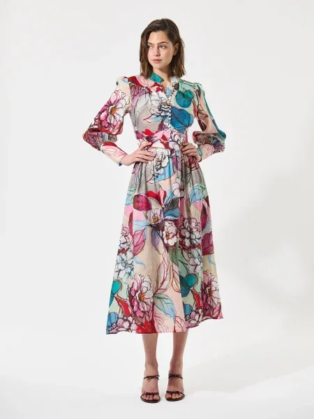 Dea Kudibal Rochie tip bluză Kamillesdea albastru deschis / verde / mov orhidee