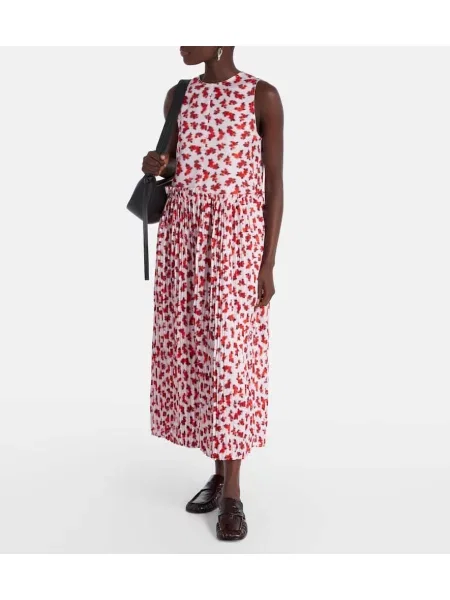 Jil Sander Rochie midi cu model floral plisată până la genunchi
