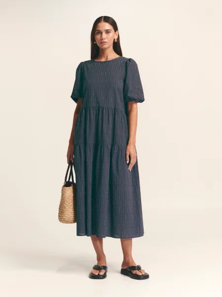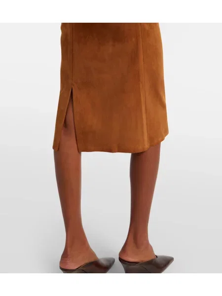 Stouls Rochie midi din piele de căprioară cu volane până la genunchi