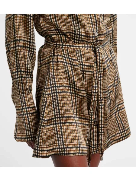 Patou Rochie tip cămașă de mătase în carouri de costum