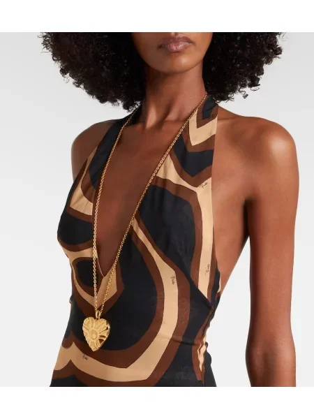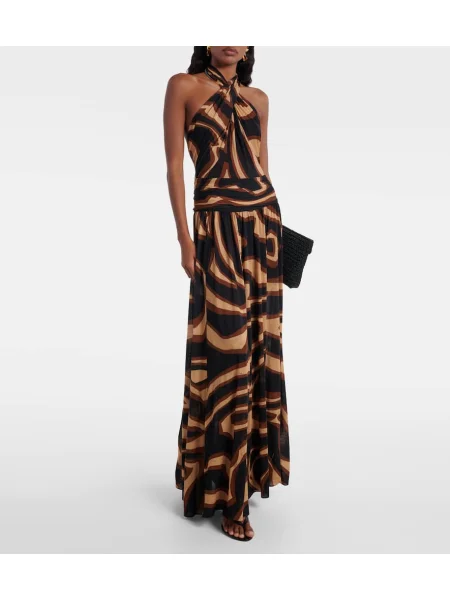 Pucci Rochie midi de mătase până la genunchi cu gât halter